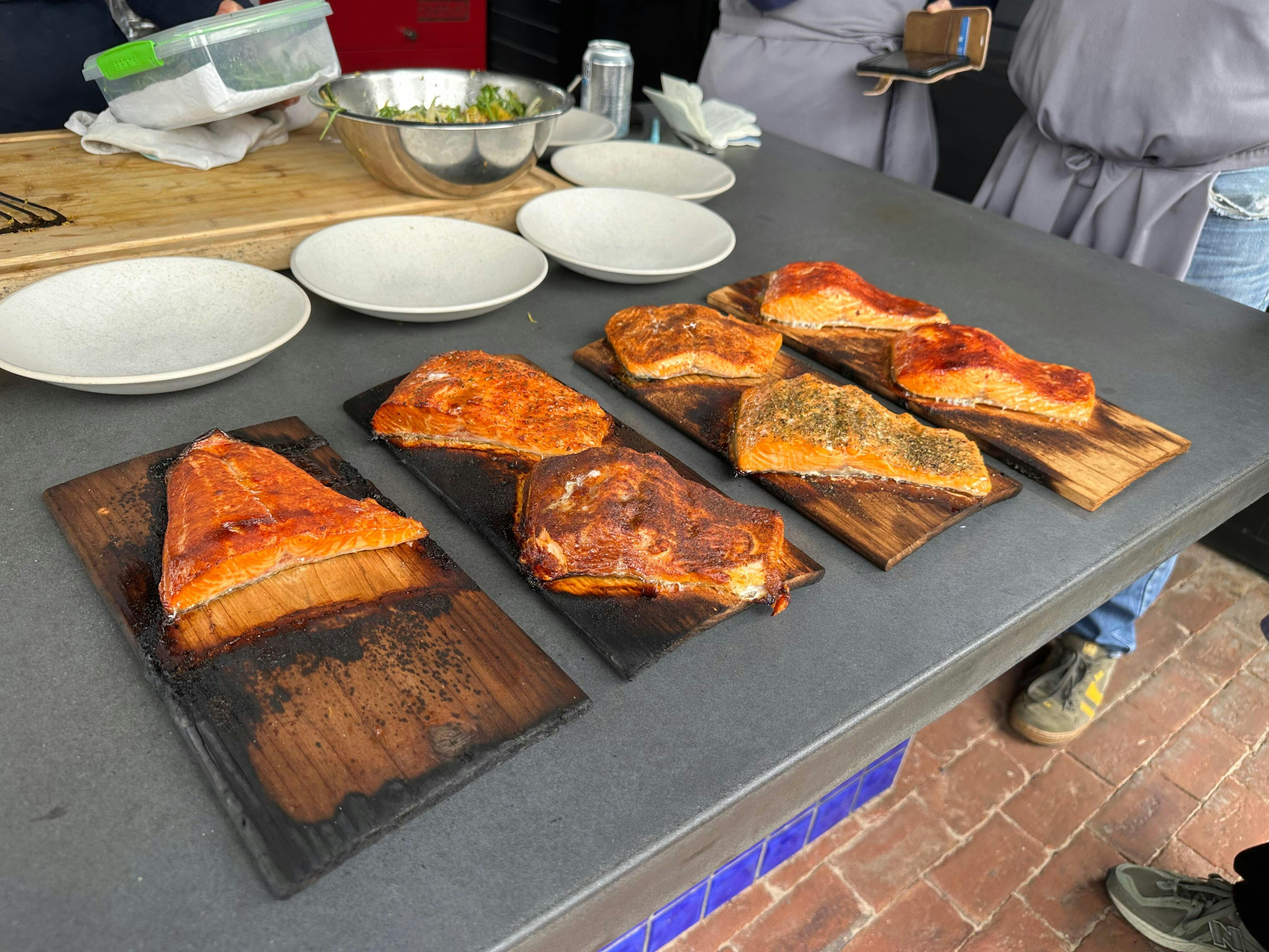 The amount of knowledge I gained from this session with the delightful Sam and Shauna is incredible! So much to take away, from fuel sources and how to use them, to different types of bbqs, I think there were 8 up and running by the end of the day! The food cooked was incredible, who knew a scotch egg could be made on a bbq? Cooking salmon on Ceder boards was a new one for me and it did not disappoint, neither did the mackerel, but just as important, learning about the accompaniment salads was a highlight. All of this with great company and a beautiful outdoor kitchen garden to spend it in. What a delight it is to sit and eat the course that you’ve just cooked, and chat with others, glass of wine in hand, eager to find out what is next on the menu. I’ll be booking onto this again, one of the best days I’ve had in a long time, thanks Sam and Shauna, I learnt a great amount of bbq knowledge see you soon
